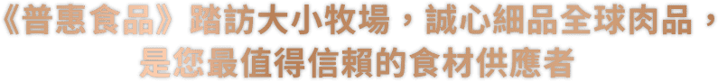 普惠食品企業(yè)股份有限公司於1985年成立至今,致力於提供臺灣食品業(yè)者來自於全球的優(yōu)質(zhì)牛肉、豬肉、雞肉、火雞肉品與海鮮,肉品批發(fā)與肉品加工分切服務(wù),最多元最專業(yè)的肉品進(jìn)口商與批發(fā)商。